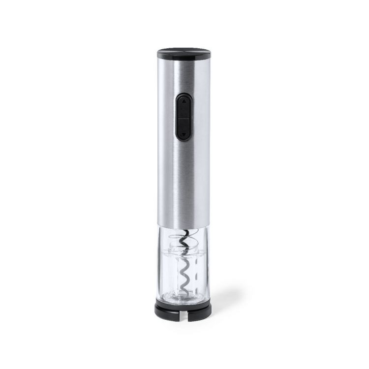 Elektrischer Korkenzieher aus Edelstahl und widerstandsfähigem ABS, inklusive Kapselschneider. Präsentiert in einer individuellen Box, mit Bedienungsanleitung in Englisch und Spanisch. Batteriebetrieben (4xAA nicht im Lieferumfang enthalten). (silber farbe)