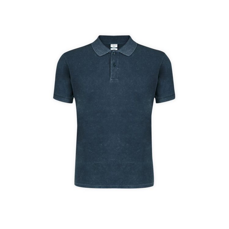 Unisex-Poloshirt mit kurzen Ärmeln und Jeans-Wasch-Effekt, der jedes Stück einzigartig und unwiederholbar macht. Elastische Kontrastdetails an Kragen und Ärmeln. Hergestellt aus 100% gekämmter Baumwolle, Ring Spun 180g/m2. Weicher Griff und moderner Schnitt. Zwei Ton-in-Ton-Knopfleisten. Doppelte Nähte am Saum und an den Ärmeln für mehr Haltbarkeit und Widerstandsfähigkeit bei intensiver Nutzung. Leicht ablösbares Etikett. Erhältlich in den Größen XS, S, M, L, XL und XXL.