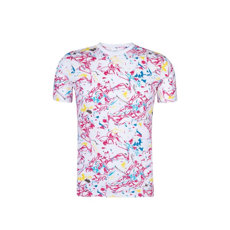 Unisex-T-Shirt mit farbenfrohem Druck. Hergestellt aus 100% ringgesponnener gekämmter Baumwolle 150g/m2. Weicher Griff und moderner Schnitt. Enger Rundhalsausschnitt aus 2x2 Rippen. Doppelnähte an Saum und Ärmeln sorgen für Strapazierfähigkeit und Widerstandsfähigkeit bei starker Beanspruchung. Leicht ablösbares Etikett. Erhältlich in den Größen XS, S, M, L, XL und XXL.