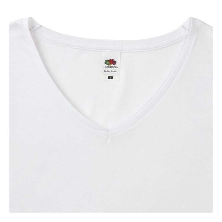 Weißes T-Shirt für Erwachsene Iconic V-Neck von Fruit Of The Loom. Hergestellt aus 100% gebürsteter Ringspinn-Baumwolle 140g/m2. Weiches Material und moderner Schnitt, mit schmalem 1x1 geripptem V-Ausschnitt und passender Knopfleiste. Leicht abnehmbares Etikett und erhältlich in den Größen S, M, L, XL, XXL.