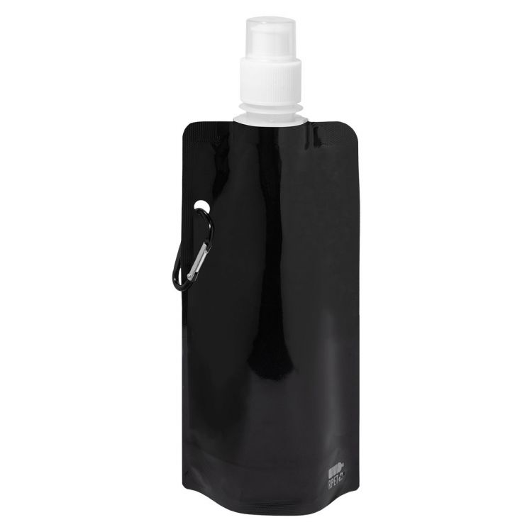 Faltbare RPET Trinkflasche mit Trinkdeckel und Karabiner aus Aluminium. Füllmenge: 500 ml. BPA-frei. Nicht geeignet für kohlensäurehaltige Getränke.