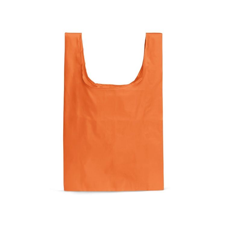 Faltbare Einkaufstasche aus 210D mit einer Innentasche und 70 cm langen Henkeln. Die Tasche wird ungefaltet geliefert. Erhältlich, in orange farbe