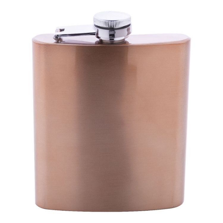 Flachmann aus recyceltem Edelstahl mit glänzendem Metallic-Finish. Füllmenge: 200 ml.