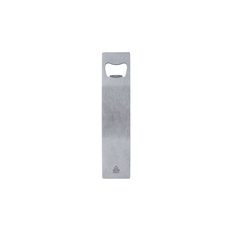 Flaschenöffner aus recyceltem Edelstahl. Enthält das Zeichen für recycelten Edelstahl.Edelstahl ist eines der am meisten nachgefragten Materialien und ist fast überall zu finden, von Alltagsprodukten bis hin zu Großkonstruktionen. Mit unzähligen Eigenschaften, unter denen Haltbarkeit und hohe Wiederverwendbarkeit hervorzuheben sind, macht es zu einer sehr geschätzten Alternative in nachhaltigen Lösungen. Bei richtiger Behandlung ermöglicht es die Gewinnung neuer Ressourcen mit unendlicher Verwendung. (silber farbe)