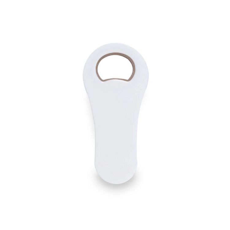 Magnetischer Flaschenöffner mit robustem Körper in verschiedenen Farben und Metallheber zum Öffnen.