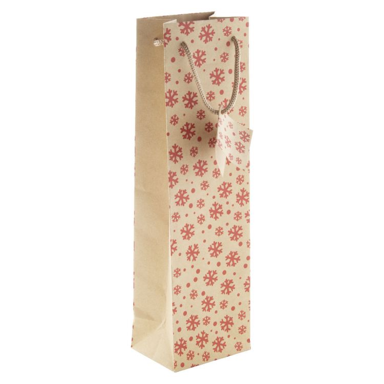 Weinflaschentasche aus Kraftpapier mit Weihnachtsmotiv und Geschenkanhänger