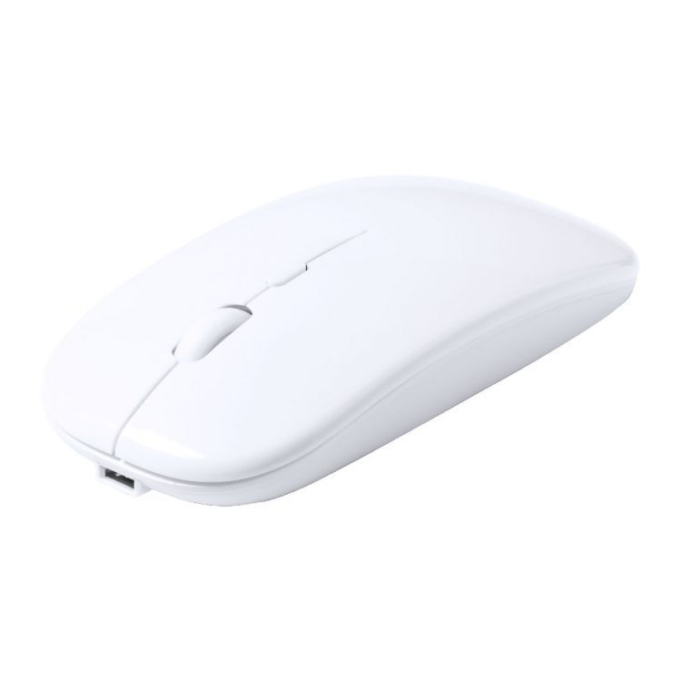 Optische Funkmaus mit Gehäuse aus recyceltem ABS-Kunststoff und eingebautem Akku. Inkl. USB-Ladekabel, in weiß farbe