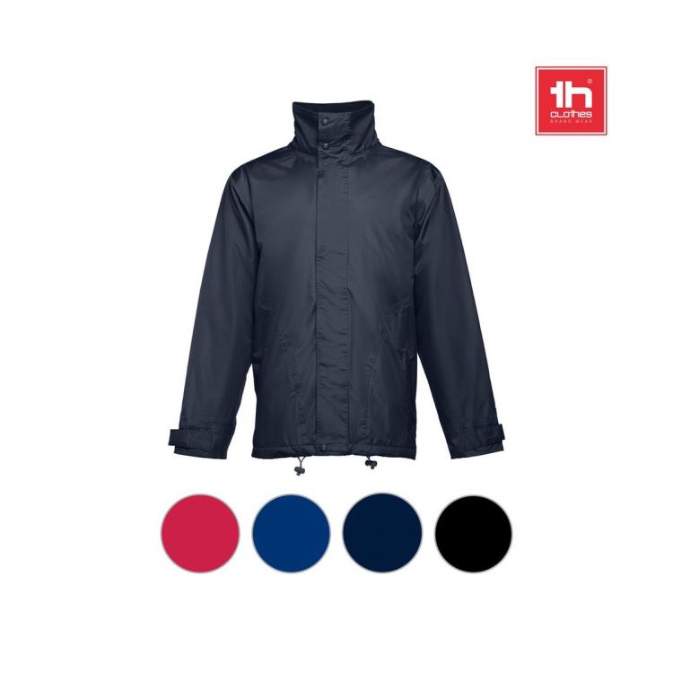 Parka aus 100% Polyester, gepolstert - Aussenseite (240g/m²) aus 100% Polyester-Pongee 240 und wasserdichter PVC-Beschichtung, Innenseite (65g/m²) aus 100% Polyester-Taft, Füllung aus 100% Polyester (80g/m²). Der Parka hat einen mit schwarz ausgekleideten Polarkragen, der mit einem Klettverschluss schliessbar ist. Die Kapuze ist faltbar und somit leicht im Kragen zu verstauen. Die Schnurbänder mit schwarzem Stopper am Kragen und an der Jackenunterseite ermöglichen eine korrekte Anpassung. Der Reissverschluss hat eine Klettverschlussabdeckung, die zusätzlich mittels Druckknöpfen geschlossen werden kann. 2 Außentaschen mit Abdeckung und 2 Innentaschen mit Klettverschluss. Mit geripptem Innenbund in 2x2, verstellbarem Ärmelbund ebenfalls mit Klettverschluss. Der Reißverschlusszugang auf der Rückseite vereinfacht die Veredelung
