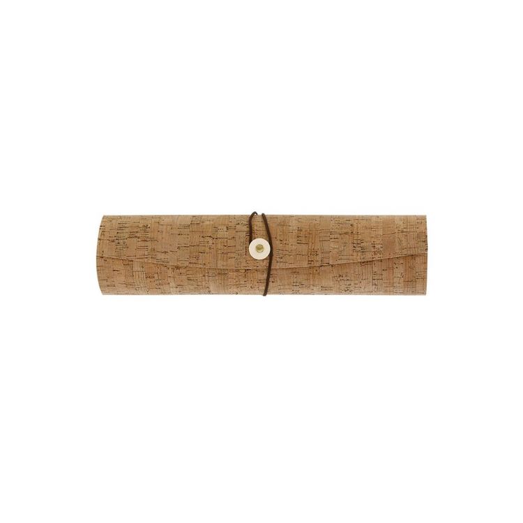 Präsentationsbox mit Innenausstattung aus Naturholz und Außenverkleidung aus Kork. Mit braunem Riemenverschluss. (natürlich farbe)