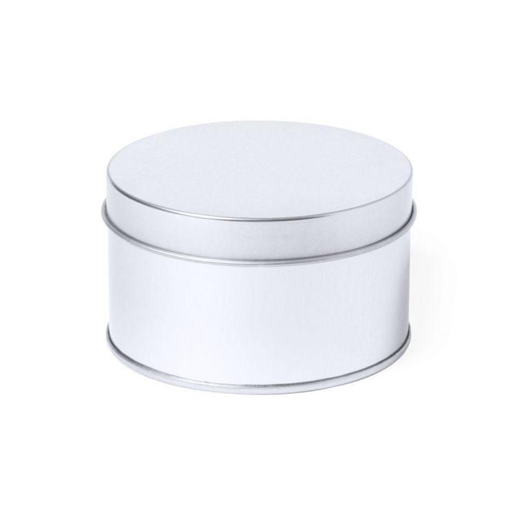 Runde Präsentationsbox aus robustem, silberfarbenem Metall mit passendem Deckel. (silber farbe)