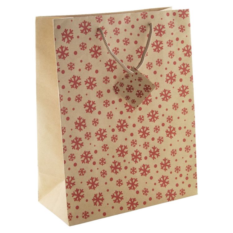 Geschenktasche aus Kraftpapier mit Weihnachtsmotiv und Geschenkanhänger