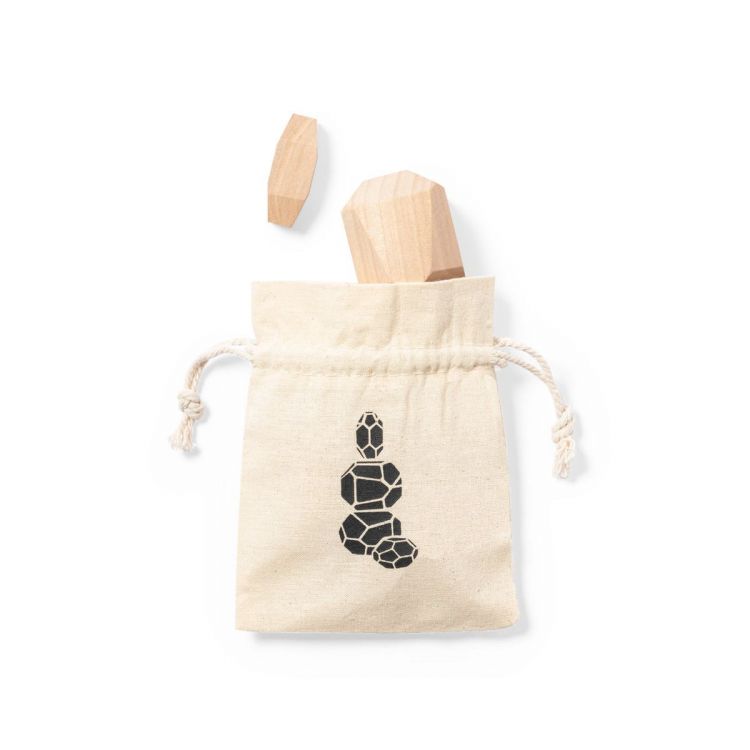 Geschicklichkeitsspiel aus widerstandsfähigem Naturkiefernholz. Set mit 4 Teilen in verschiedenen Größen, in einer Tragetasche aus Baumwolle mit passenden Kordeln. Präsentiert in einer individuellen Box mit Kraftpapier-Design. (natürlich farbe)