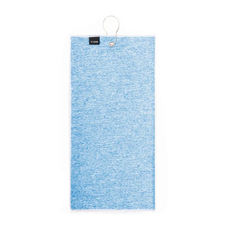 Golfhandtuch aus RPET, saugfähig und weich mit den Maßen 40x60 cm. In der Mitte befinden sich ein verstärkter Ring und ein Karabinerhaken, beide aus rostfreiem Stahl. Mit dem RPET-Logo auf dem Etikett.Das RPET-Material wird aus recyceltem Kunststoff hergestellt, um die Wiederverwendung von Kunststoffabfällen zu fördern und einen Beitrag zur Nachhaltigkeit unseres Planeten zu leisten.