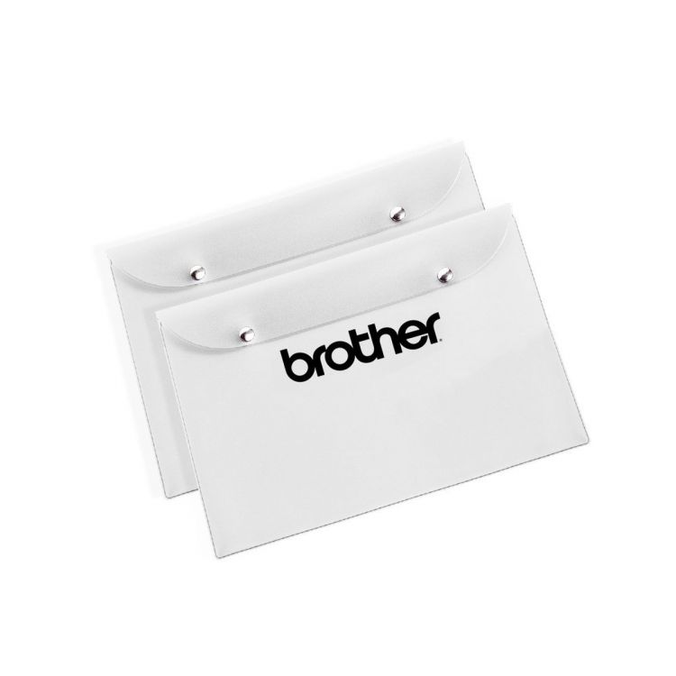 Großer Umschlag mit Klappe aus transparentem PVC, mit zwei vernickelten Verschlussknöpfen.