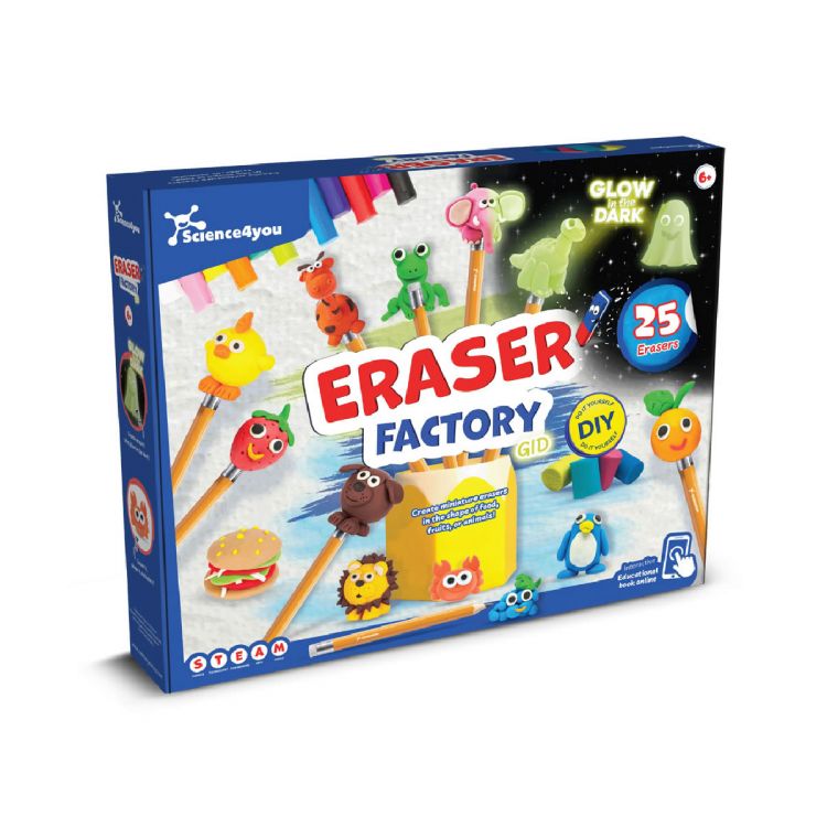 Die Radiergummi-Fabrik ist das ideale Spielzeug für Kinder, die eine Antwort auf die Frage suchen: Wie löscht ein Radiergummi aus, was ein Bleistift schreibt? Mit diesem Bausatz kann man Radiergummis herstellen, die im Dunkeln leuchten und so eine einzigartige und persönliche Form erhalten. Empfohlenes Alter: ab 6 Jahren, in transparentes weiß farbe