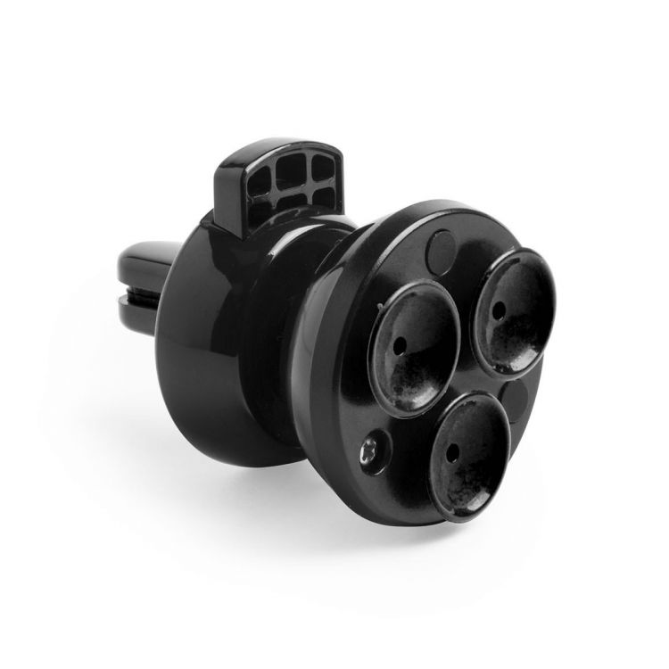 Smartphone-Halter in elegantem Schwarz für die KFZ-Lüftung mit Befestigung des Gerätes mittels Saugnäpfen. Mit 360º Drehmechanismus und bis zu 45º Neigung. Präsentiert in einer attraktiven Designbox. (schwarz farbe)