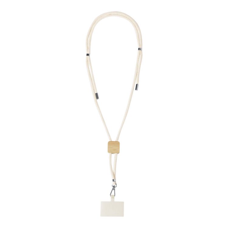 Längenverstellbares Handyhalter-Lanyard aus Baumwolle mit Bambuselement, Handyeinleger und Metall-Karabiner