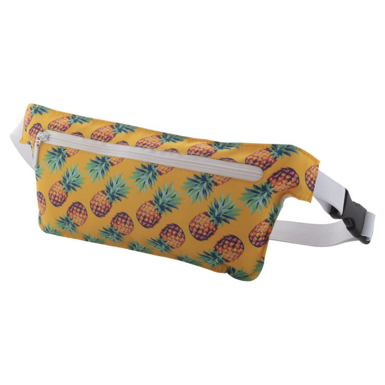 Individuelle Sportgürteltasche aus Polyester mit Reißverschlussfach und einstellbarem Gurt. Der Preis ist inkl. All-Over-Sublimationsdruck. Mindestmenge: 50 Stk.