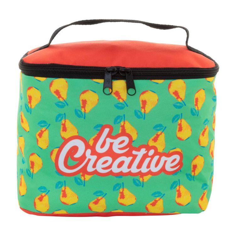 Individuelle RPET-Kosmetiktasche mit Reißverschluss aus 600D RPET-Polyester mit Tragegriff. Mit vollflächigem Sublimationsdruck. Mindestmenge: 50 Stk.