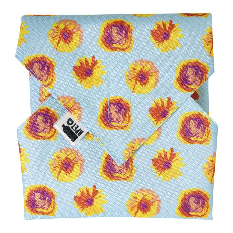 Individuelle, faltbare und wiederverwendbare Snacktasche aus 600D RPET-Polyester mit strapazierfähiger, wasserdichter Beschichtung und Klettverschluss. Ideal zum Einwickeln von Snacks oder Sandwiches. Der Preis ist inkl. vollflächigem Sublimationsdruck. Mindestmenge: 25 Stk