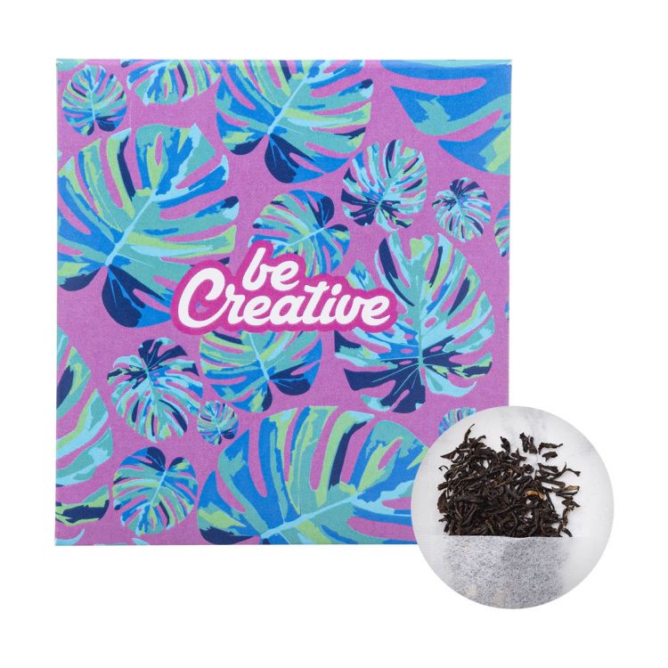 Einzeln verpackter Teebeutel in individueller, vollfarbig bedruckte Papierhülle. Enthält 1,2 Gramm (1 Beutel) Tee. Mindestmenge: 100 Stk