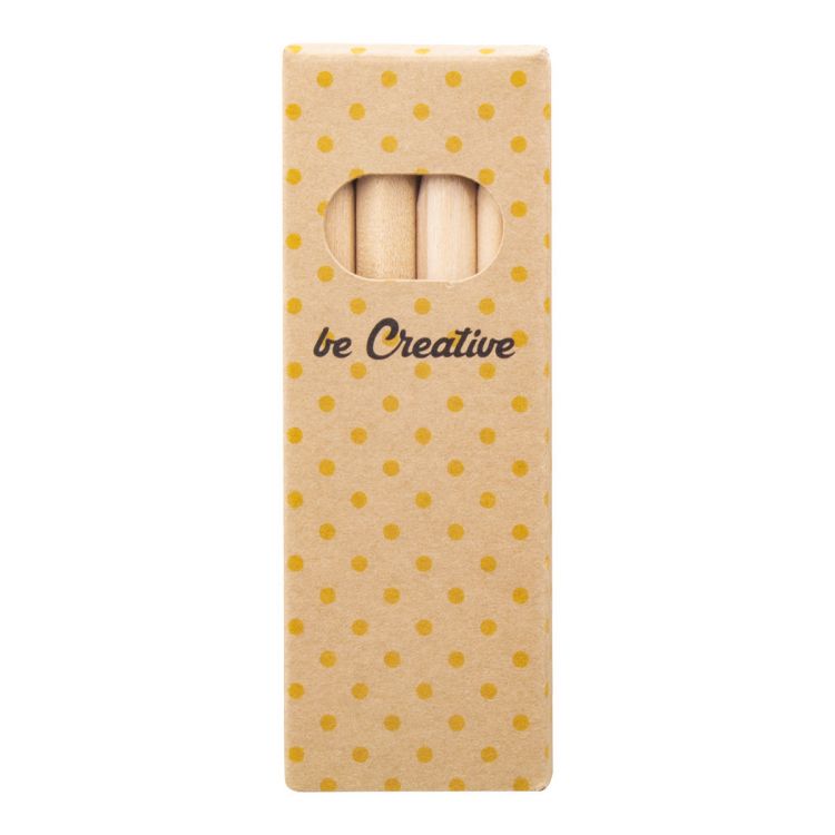 Holzbuntstifte (4 Stk.) in vollfarbig bedruckter Kraftpapierbox. Der Preis ist inkl. Digitaldruck. Mindestmenge: 100 Stk