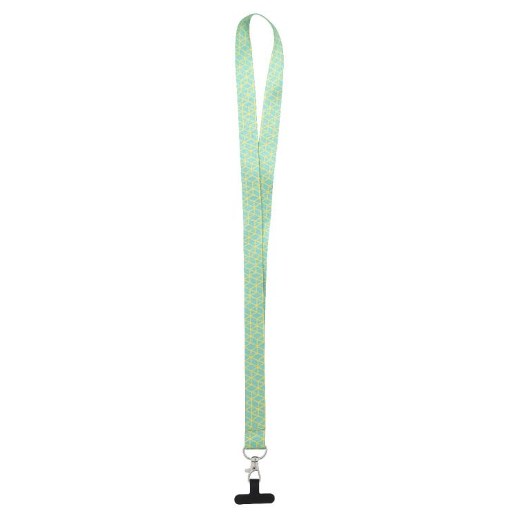 Individuelles Handyhalter-Lanyard aus RPET mit Metallkarabiner und Handyhalter aus reißfestem Papier. Inklusive Sublimationsdruck auf beiden Seiten. Mindestmenge: 100 Stk.