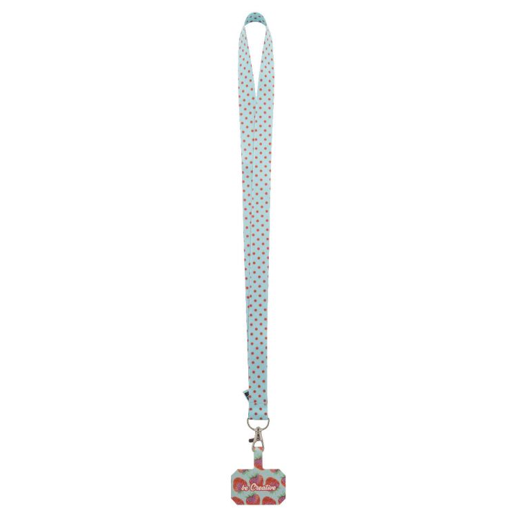 Individuelles Handyhalter-Lanyard aus RPET mit Metallkarabiner mit vollfarbig bedrucktem Telefoneinleger aus wasserfestem Papier und mit Sublimationsdruck auf beiden Seiten. Mindestmenge: 100 Stk
