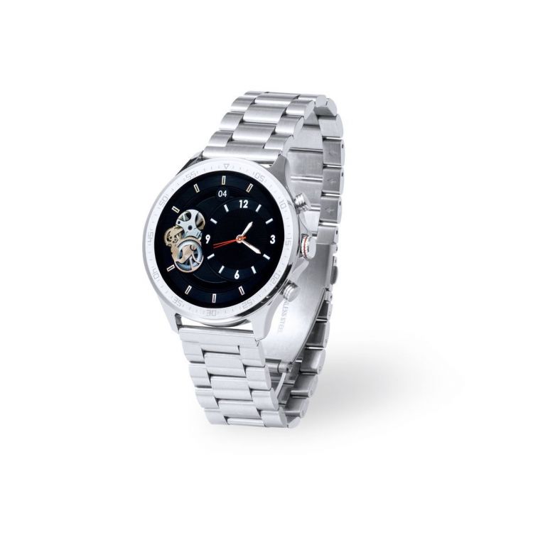 Multifunktions-Smartwatch im lässigen Design, mit Bluetooth®-Verbindung. Rundes Designgehäuse und passendes Edelstahlarmband. 1,32-Zoll-TFT-Touchscreen-Display und 230-mAh-Akku machen es zum perfekten Gadget für alle Arten von Sport, Freizeit und Alltagsaktivitäten. Zahlreiche Funktionen verfügbar, mehrsprachige Benutzeroberfläche und spritzwassergeschützt, mit APP für iOS und Android verfügbar. Präsentiert in einer individuellen Designbox, mit Bedienungsanleitung in Englisch und Spanisch. (silber farbe)