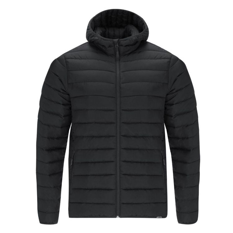 RPET Unisex-Jacke mit Kapuze. Aus extra leichtem Material mit Daunenoptik-Steppung und weichem Innenfutter, wasserdicht und winddicht. Bündchen, Saum und Kapuze mit passender elastischer Paspelierung. Umgekehrte Reißverschlussöffnung mit passendem Reißverschluss-Zipper und Kinnschutz. Einschließlich 2 Außentaschen mit passenden Reißverschlüssen und Zuglaschen sowie 2 Innentaschen. RPET-Etikett an der Paspel und praktische Tragetasche mit verstellbarem Zugband.