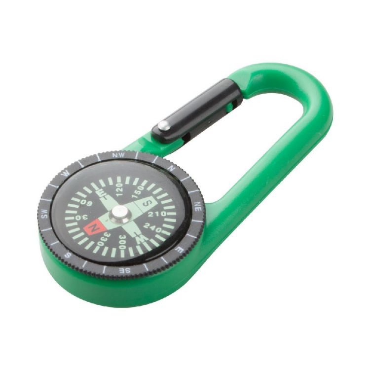 Karabiner aus Kunststoff mit Kompass.