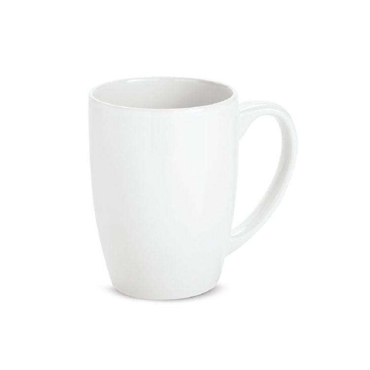 Tasse aus Keramik (350 mL). Geliefert in einer Schachtel. Die Tasse ist Spülmaschinengeeignet und hält mindestens 125 Waschgänge (einschließlich Bedruckung) gemäß EN12875-1 aus, in weiß farbe
