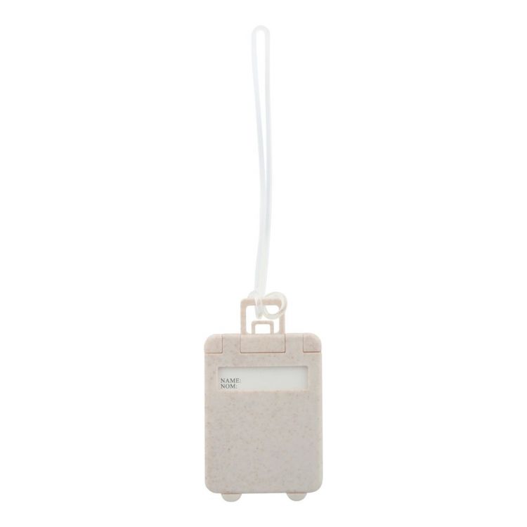 Kofferanhänger in Trolley-Form aus ökologischem Weizenstroh-Kunststoff mit elastischem Band.