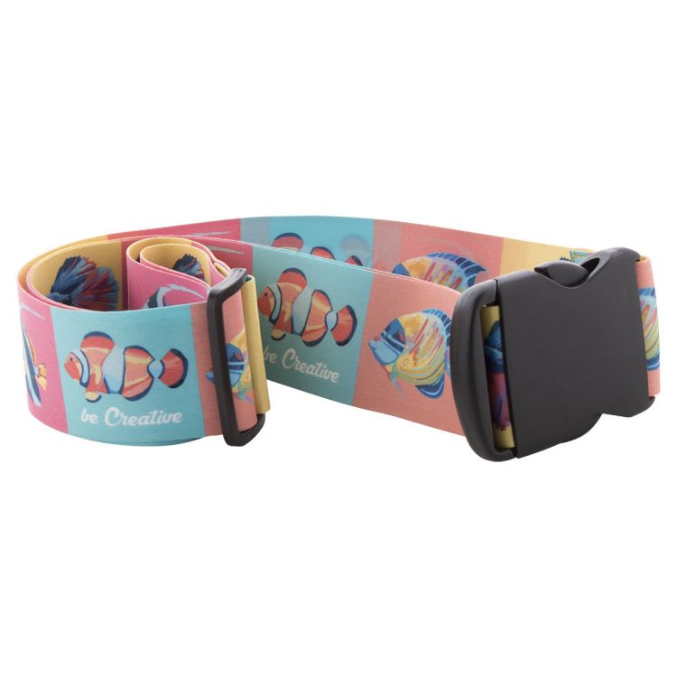 Koffergurt aus Polyester in individuellem Design. Inkl. Sublimationsdruck auf beiden Seiten. Mindestmenge: 50 Stk