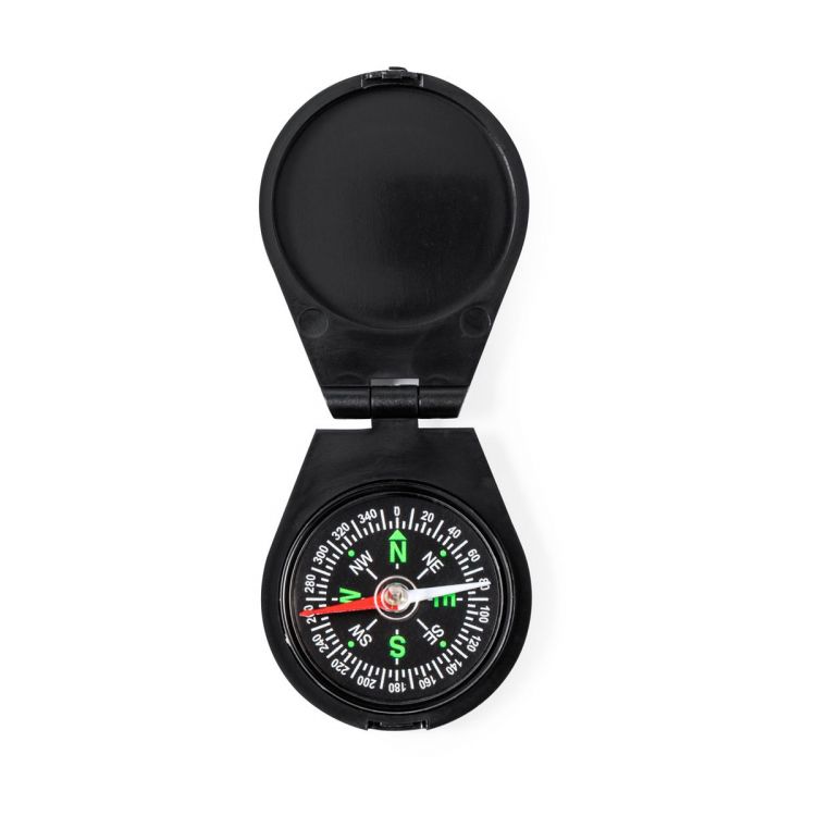 Taschenkompass aus strapazierfähigem ABS-Material. Mit verschließbarem Deckel, schwarzem Zifferblatt und grünen Himmelsrichtungen zur einfachen Orientierung. Präsentiert in einer individuellen Box. (schwarz farbe)
