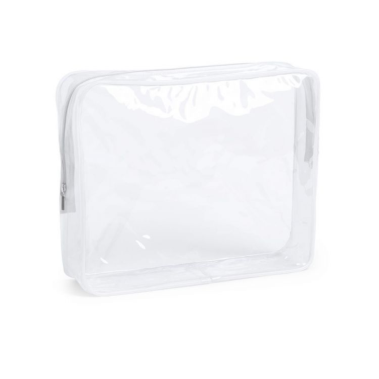Mehrzwecktasche aus resistentem halbtransparentem und transparentem PVC-Material. Erhältlich in verschiedenen lebendigen Farben mit farblich passendem Reißverschluss.
