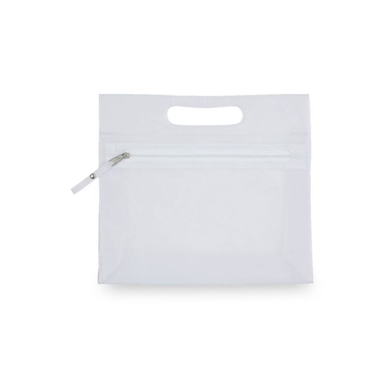 Vielseitig verwendbarer Kulturbeutel aus robustem, halbtransparentem PVC in verschiedenen Farben. Mit robustem, gestanztem Griff und farblich passendem Reißverschluss mit Zugband für einfaches Öffnen.