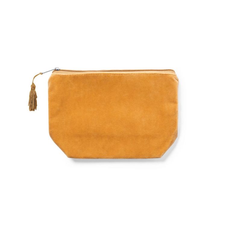 Kosmetiktasche aus Samt, mit Reißverschluss und Quaste am Griff. Hergestellt aus Rayonsamt und genäht, erhältlich in braun und schwarz. (braun farbe)
