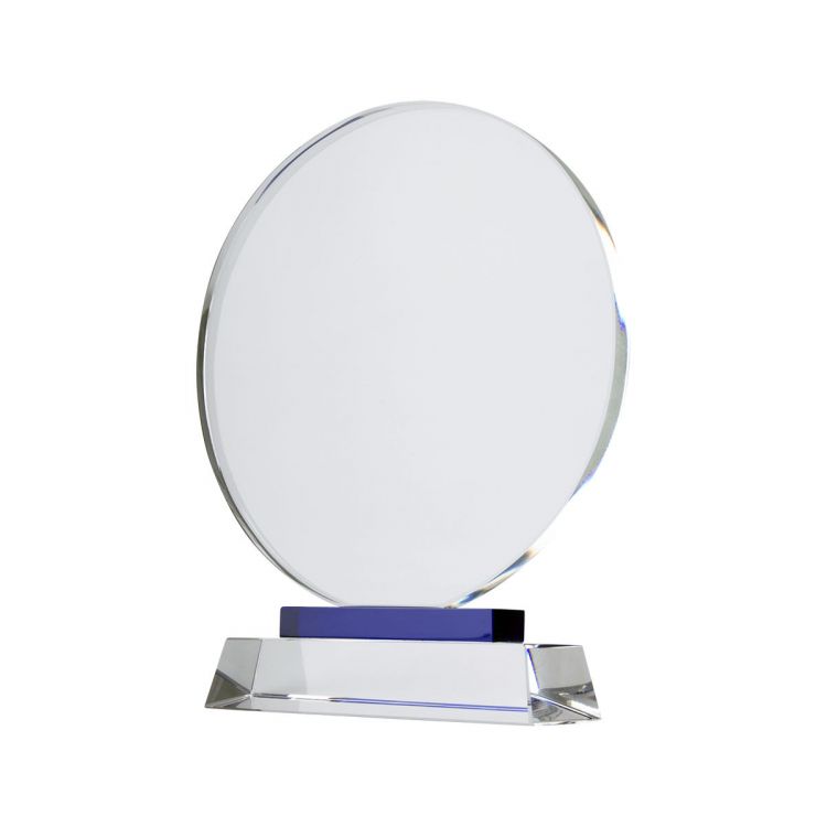 Runde Trophäe mit Glasfuß. Einzeln verpackt in blauer Geschenkbox mit Seideneinlage und magnetischem Verschluss