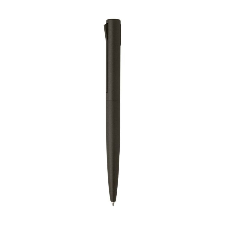 Kugelschreiber aus recyceltem Aluminium in mattem Metallic-Farbton, mit recyceltem ABS-Oberteil und spezieller Clipmechanik, blauschreibend.