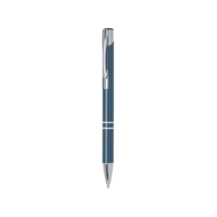 Origineller Kugelschreiber mit Druckknopfmechanismus in elegantem zweifarbigen Design. Gestanzter Aluminiumschaft mit glatter Oberfläche in verschiedenen Farben. Origineller Clip, Ringe und Spitze in Silber. Mit Jumbo-Mine und blauer Tinte.