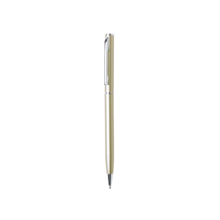 Kugelschreiber aus Aluminium, glänzend lackiert und mit Drehmechanik, mit verchromten Beschlägen und Ringen. Erhältlich in einer Vielzahl von Farben, mit blauer Tinte.