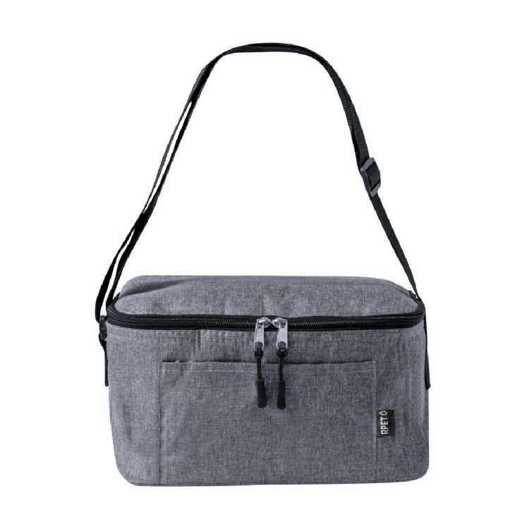 Kühltasche aus strapazierfähigem 600D RPET Polyester mit attraktivem Melange-Effekt. Das Hauptfach ist mit einem Reißverschluss und einem Aluminiumfutter ausgestattet. Außerdem verfügt sie über eine praktische Außentasche und einen verstellbaren Schultergurt, der das RPET-Emblem auf dem Außenetikett hervorhebt. Inklusive Lunchbox mit zwei 700-ml-Fächern und Besteck aus schwarzem, recyceltem PP. Einzeln verpackt in einer recycelten Tasche.Das RPET-Material wird aus recyceltem Kunststoff hergestellt, um die Wiederverwendung von Kunststoffabfällen zu fördern und einen Beitrag zur Nachhaltigkeit unseres Planeten zu leisten. (grau farbe)