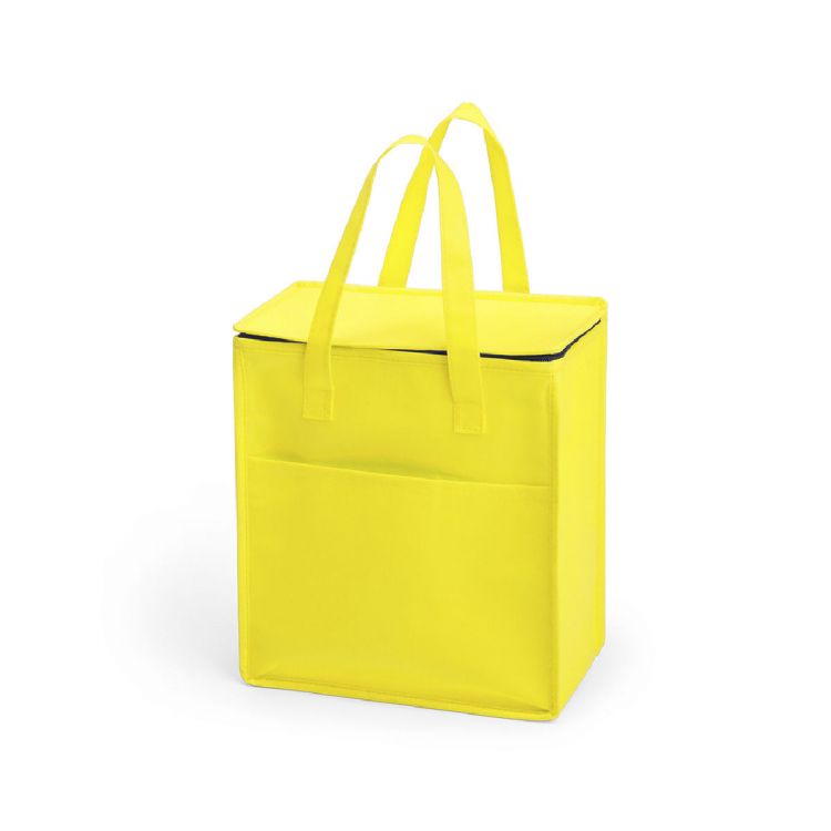 Kühltasche aus Kunststoff mit Aluminium-Innenausstattung. Praktisch dank seiner 9,5 L Kapazität und einer nützlichen Außentasche, leicht zu tragen dank der Henkel und dem Deckel mit Reißverschluss. Hohe Belastbarkeit von 5 kg und in einer breiten Palette von Farben erhältlich.