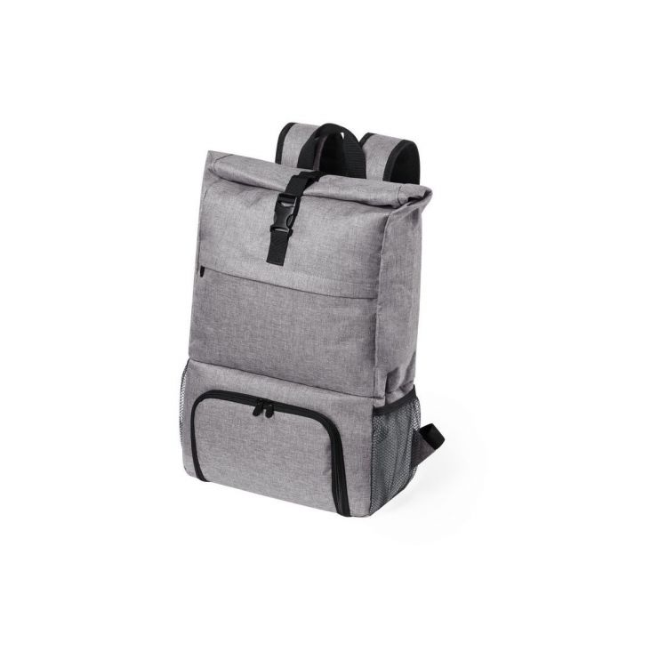 Mehrzweck-Rucksack aus strapazierfähigem 600D-Polyester mit Denim-Finish. Urbanes Design, mit separatem Isolierfach mit PEVA-Hülle für die Brotdose. Hauptfach mit sicherem Schnallenverschluss und seitlichen Netztaschen. Mit verstellbaren, gepolsterten Schultergurten. (grau farbe)