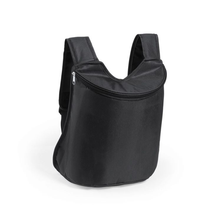 Kühlrucksack aus robustem 600D Polyester in lebendigen Farben mit farblich passendem Reißverschluss. Mit Isotherm-Innenraum in Aluminium-Ausführung und verstellbaren Schultergurten mit Polsterung.