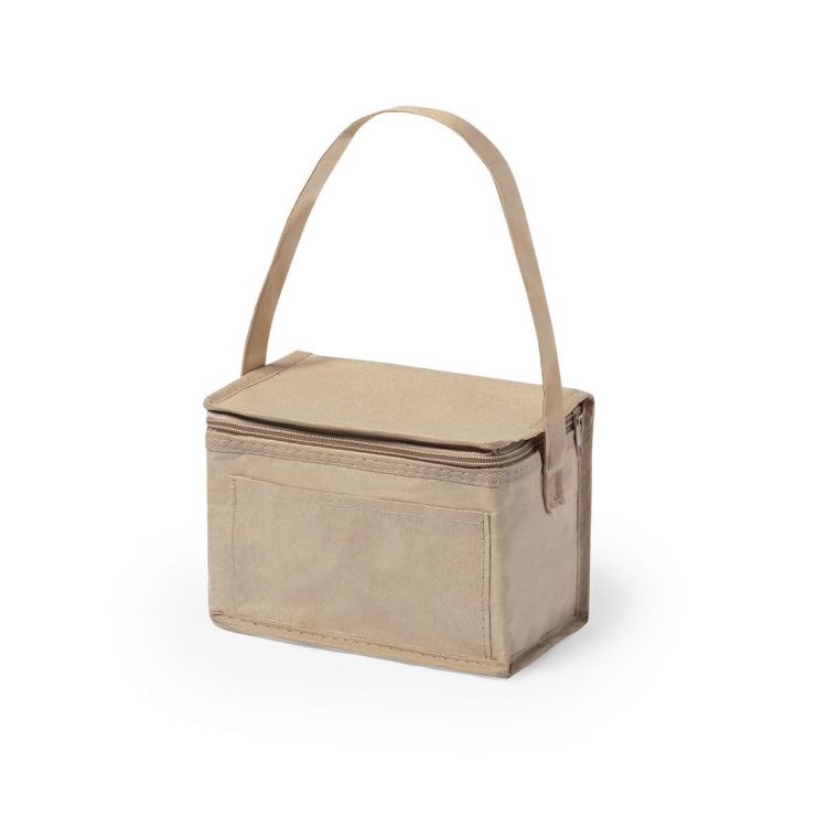 Nature Line Kühltasche mit Fassungsvermögen für 6 Dosen. Aus feuchtigkeitsbeständigem, laminiertem Papier, mit isothermischer Innenausstattung aus Aluminium. Reißverschluss und Tragegriff in passender Farbe, mit Außentasche zum Bedrucken. (natürlich farbe)