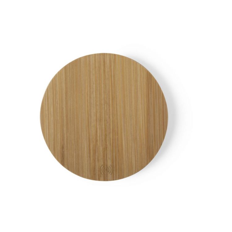 Drahtloses Ladegerät in Naturausführung, mit Kreis-Design. Schale aus Bambus, aus natürlich geschnittenen Bambusstücken. Ladeanzeige und kompatibel mit Geräten, die mit drahtloser Ladetechnologie ausgestattet sind. Großer Druckbereich und präsentiert in einer attraktiven, individuellen Öko-Design-Box. (natürlich farbe)
