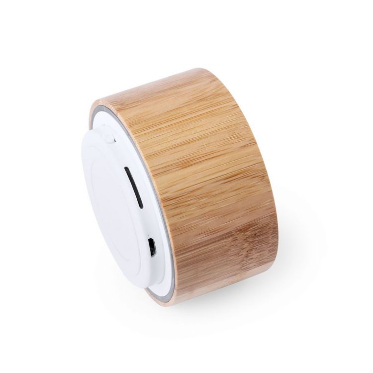 Kompakter Bluetooth®-Lautsprecher aus Bambus. Bietet 3 W Leistung, Freisprechfunktion und FM-Radio. Slot für Micro-SD-Karte. Aufladbar über USB-Kabel (inklusive). Mit rutschfestem Einsatz an der Unterseite. Präsentiert in einer attraktiven Designbox.