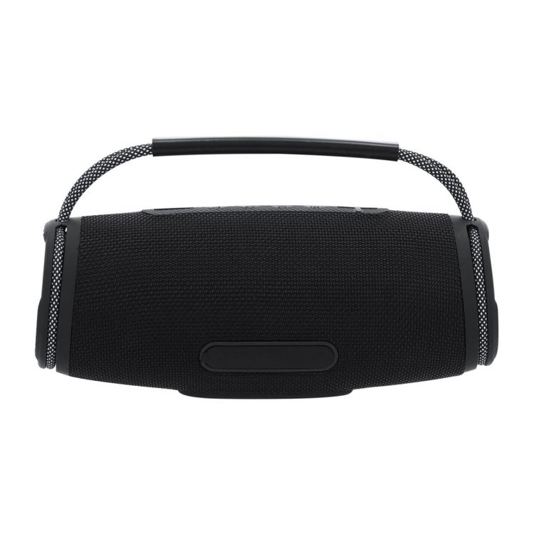 Stereo Bluetooth® Lautsprecher 2x5W mit mehrfarbigem Licht, hergestellt aus widerstandsfähigem Premium-Stoff. Er verfügt über einen zweifarbigen, geflochtenen Tragegriff mit weichem Silikongriff. Er enthält einen speziellen Seitenbereich für Druck. Mit mehrfarbigen LED-Lichtern, die 7 Beleuchtungsmodi bieten, Bluetooth 5.3 Konnektivität und einem integrierten Bedienfeld oben bietet er Freisprechfunktionalität, USB-Anschluss, Typ-C-Anschluss und einen Micro-SD-Kartenleser und FM-Radiofunktion. (schwarz farbe)